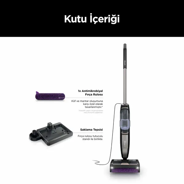 - Döner başlık: Süpürme + buharlı temizlik bir arada