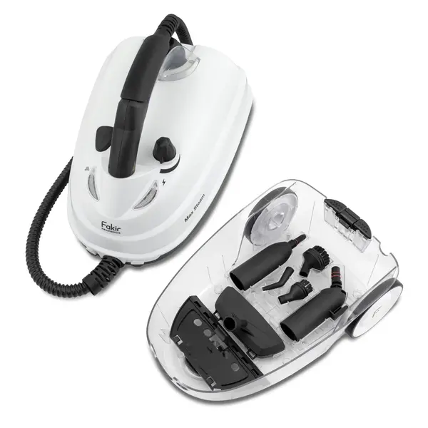 Fakir Max Steam, buhar teknolojisine ve yüksek basınç kapasitesine sahip bir buharlı temizlik cihazıdır. 5 bar buhar basıncı, inatçı lekelerin temizliğinde kullanılabilir. 1.6 litrelik su haznesi sayesinde 50 dakikaya kadar kesintisiz temizlik imkanı sunar. Paslanmaz çelikten üretilen kazan mevcuttur. Buhar hazır ışığı, cihazın kullanıma hazır olduğunu belirtir.