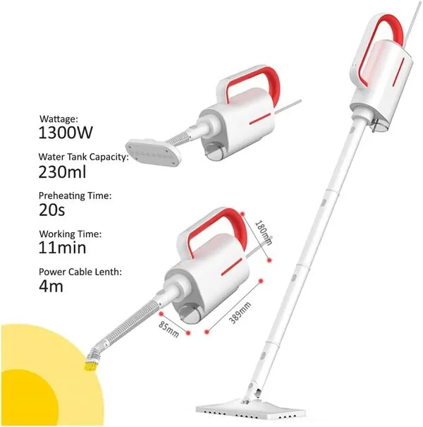 Deerma DEM-ZQ610, buharlı temizlik için tasarlanmış bir cihazdır. 1600 W gücünde çalışan cihaz, 20 saniyede 150°C sıcaklığa ulaşır ve 3 bar basınç sağlar. Başlık seti sayesinde sert zeminlerden kumaş yüzeylere, camlardan klozet temizliğine kadar farklı alanlarda kullanılabilir.