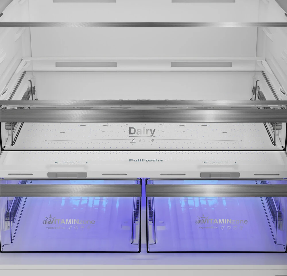 - hyperFresh Plus teknolojisiyle sebze ve meyveler için ideal nem koruması