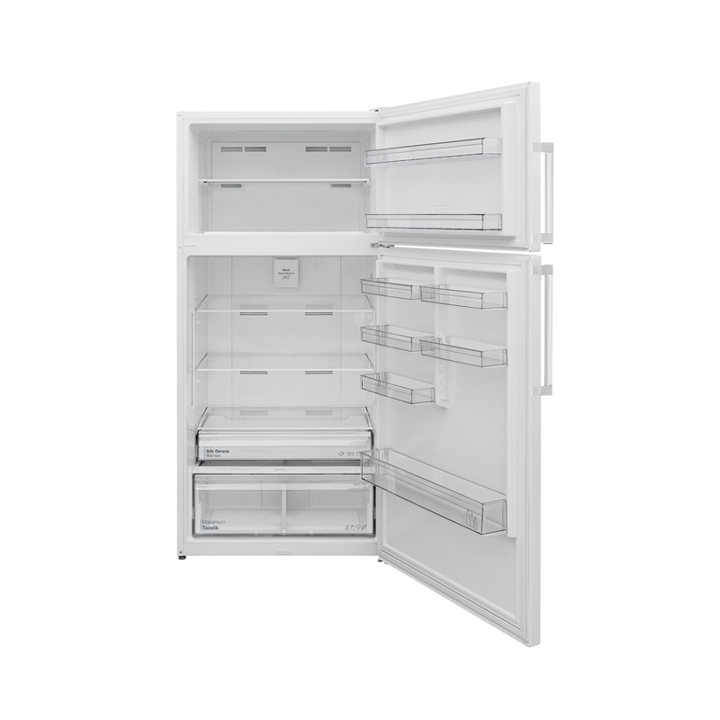 Elektronik sıcaklık kontrol paneli üzerinden tatil modu, ekonomi modu ve çocuk kilidi gibi ek özellikler aktif hale getirilebilir. Ayrıca kapı açık kaldığında hem sesli hem görsel uyarı sistemiyle güvenliği artırır. Enerji sınıfı E olan cihaz, yıllık 296 kWh tüketim ile geniş hacmine rağmen dengeli bir performans sunar. Uygun fiyatıyla fonksiyonel özellikleri bir araya getiren bu model, bütçe dostu bir tercih arayanlar için öne çıkan bir seçenektir.