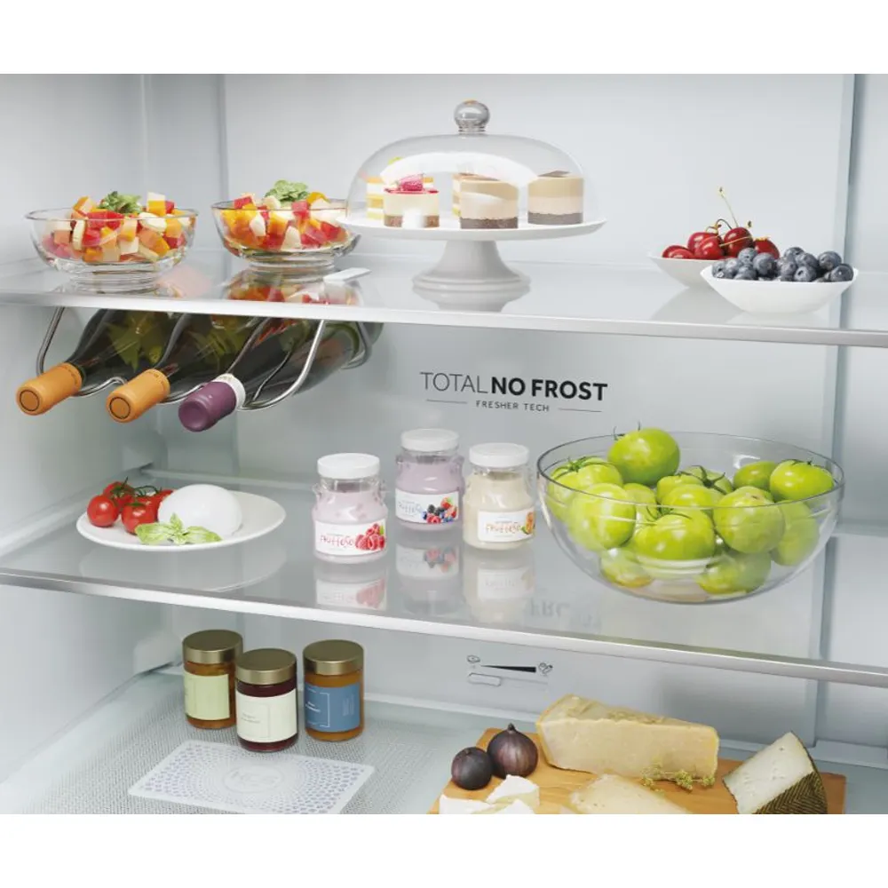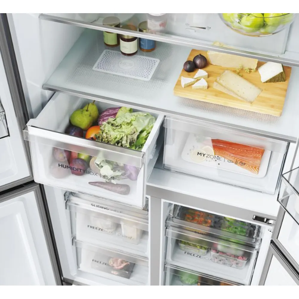 Haier HCR5919ENMP modeli, 528 litre iç hacmi ve dört kapılı gardırop tipi tasarımıyla geniş aileler için ideal bir kullanım sunar. En dikkat çekici özelliği olan Haier Air Surround teknolojisi, soğuk havayı her köşeye eşit şekilde dağıtarak gıdaların daha uzun süre taze kalmasını sağlar. 354 litrelik soğutucu ve 174 litrelik dondurucu alanı, geniş iç hacim arayan kullanıcıların beklentilerini karşılar.