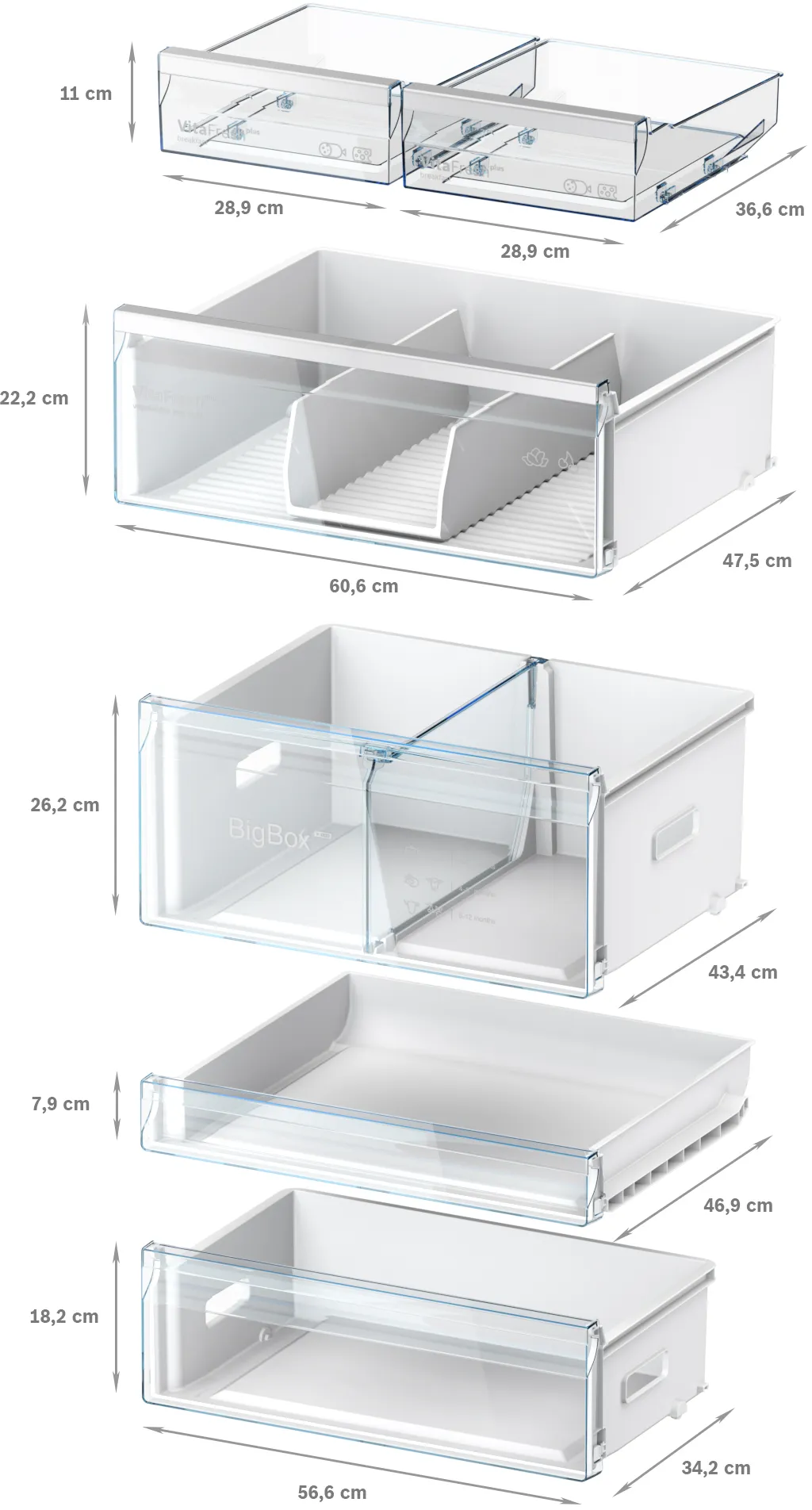 - 198 kWh yıllık tüketimle Bosch NoFrost serisinin en düşük enerji kullanımı