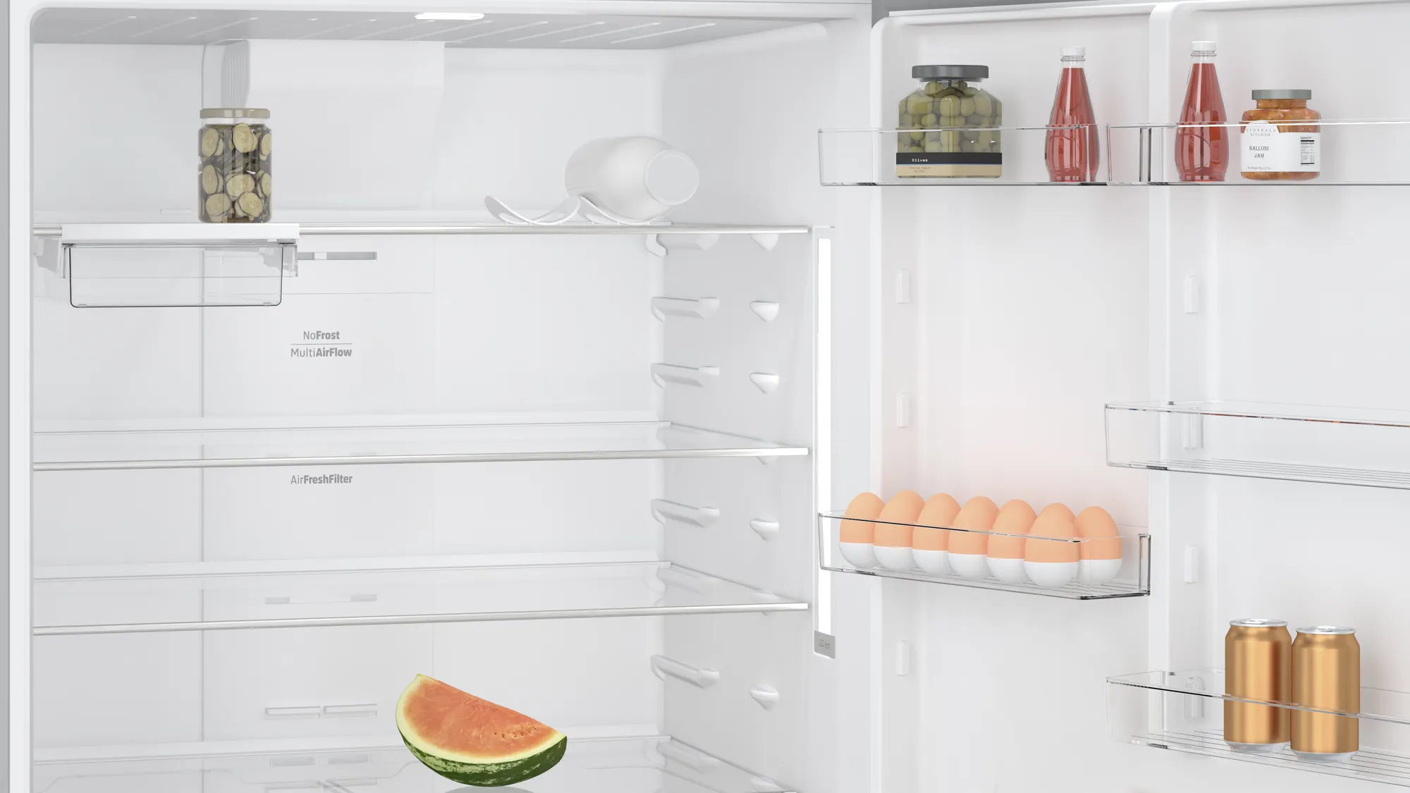 ExtraCold çekmecesi, et ve süt ürünleri için ideal ısıda saklama ortamı sağlarken, AirFresh filtre kötü kokuların buzdolabı içerisinde yayılmasını önleyerek daha hijyenik bir iç ortam yaratır. LED aydınlatmalı raflar, kapı alarmı ve süper soğutma/dondurma modları ise buzdolabını hem konforlu hem fonksiyonel hale getirir. Teknoloji açısından minimal ama kullanım açısından maksimum verimlilik isteyenler için dengeli bir tercih sunar.